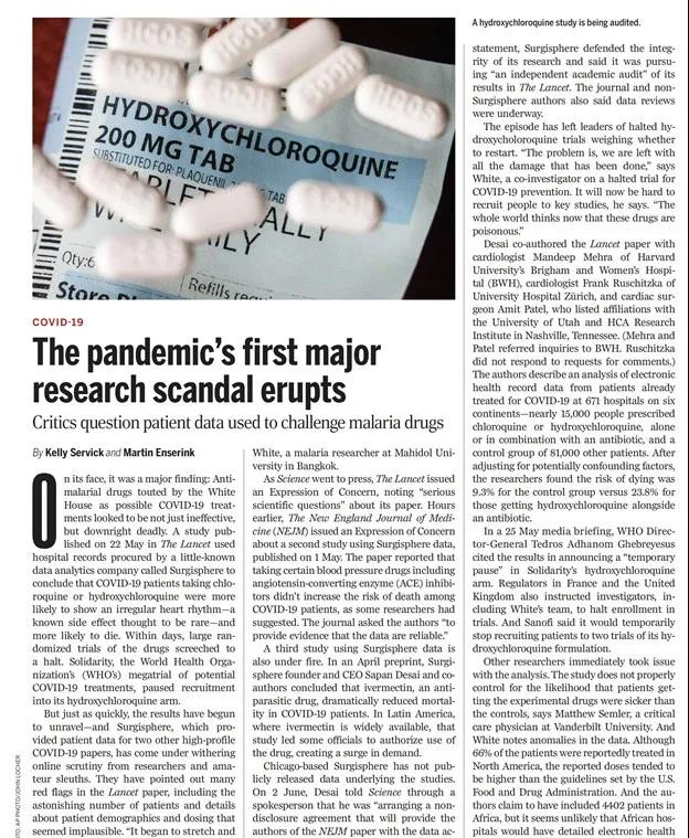 《科學》也在第一時間發(fā)表了評述文章“疫情以來,第一個科研丑聞調(diào)查”: