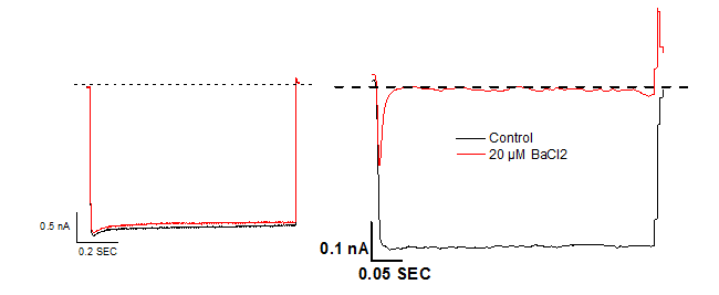 Ik1 current in guinea pig cardiomyocyte and blockade effect of 20 μM BaCl2