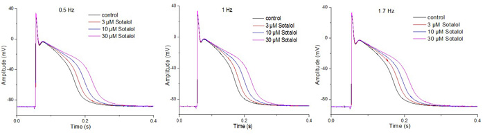 索他洛爾在不同刺激頻率下對兔心臟蒲氏纖維動作電位的影響