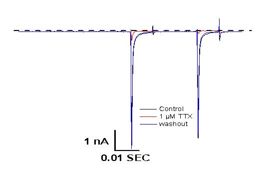 1 μM TTX阻斷hNav1.7的原始電流曲線圖