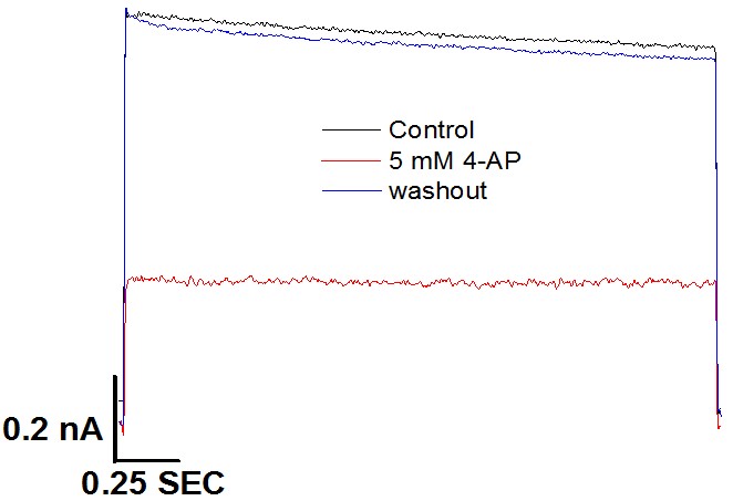 5 mM 4-AP阻斷Kv1.5的原始電流曲線圖